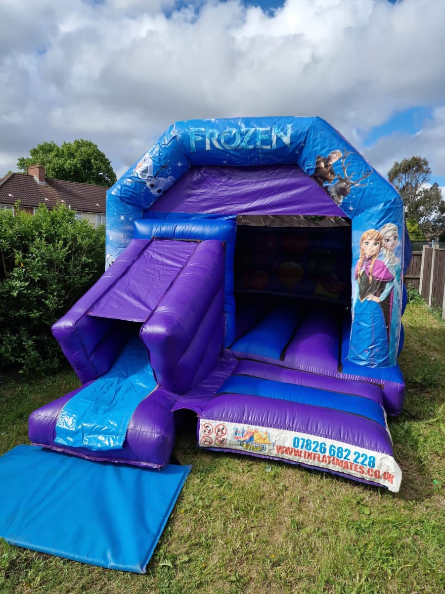 Whether you're hosting a birthday party, a school event, or a community gathering, our Frozen Bouncy Castle with Slide is the perfect entertainment option. The slide adds an extra element of excitement, allowing kids to experience the thrill of sliding down into a soft and bouncy landing. With its sturdy construction and safety features, parents can have peace of mind while their children have a blast.